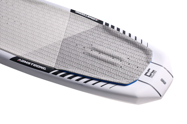 Emphasising modularity within board design, Armstrong introduced a major innovation to the wing board space in 2021 with the Forward Geometry concept. Designed to work with any brand of foil, the FG design increases responsiveness by placing the foil more centrally and reducing swing weight in turns. Riders can grow into their setup at their own pace by progressing mast position from the rear to the front of the tracks as desired. The Wing FG board range carries on that design legacy with foil tracks that are strategically placed well forward for maximum manoeuvrability and a hyper connected feel on foil, delivering high performance to riders on all the board sizes.