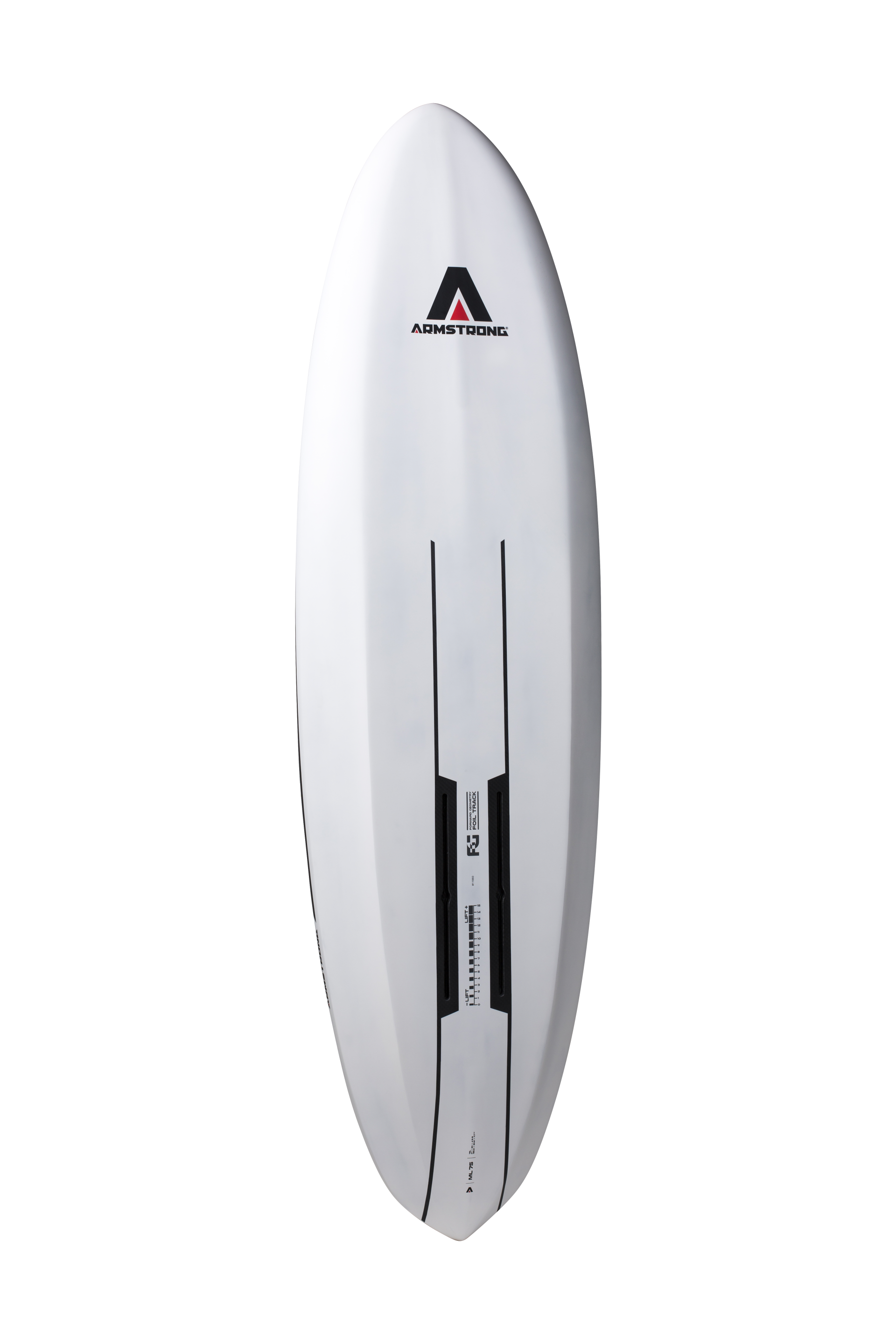 - Bottom: Pulling from the Downwind boards, a subtle double concave at the nose works its way flat at the foil tracks and finally into the diamond-V tail shape for a quick pop up and maximum un-stickiness when touching down. If a board ever wanted to stay in the air, this would be it.